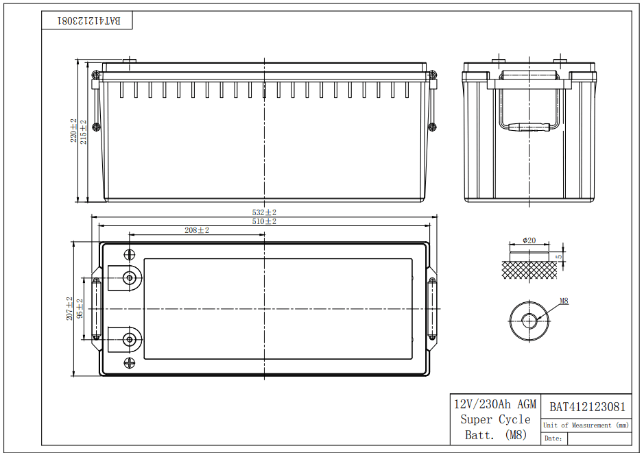 An additional advantage of the new chemistry is a slightly smaller size and less weight compared to our standard deep cycle AGM batteries.