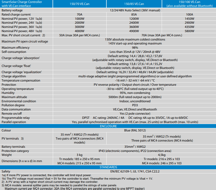 Victron 12/24/48V 100A SmartSolar MPPT 150/100-MC4 VE.CAN Bluetooth Solar Charge Controller