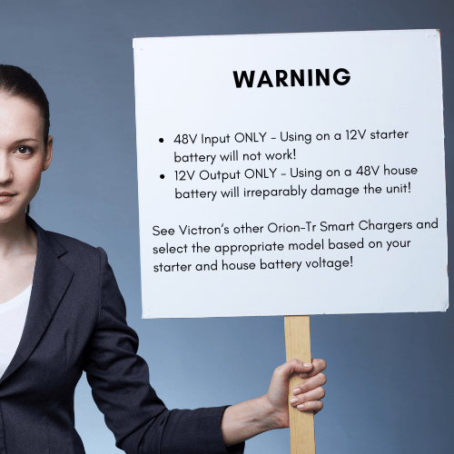 WARNING: This unit is specifically designed for 48V to 12V charging systems. Using it with other voltage systems may cause irreversible damage.