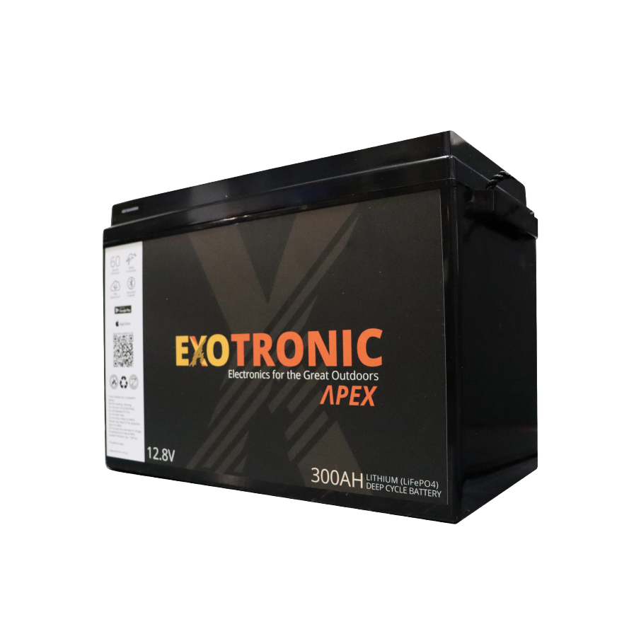 Upgrade to the Exotronic 12V 300Ah Apex Series Smart Deep Cycle LiFePO4 Lithium Battery for unparalleled performance and reliability. Perfect for a wide range of applications, from adventurous off-roading to dependable marine use. Empower your adventures with Exotronic's cutting-edge technology!