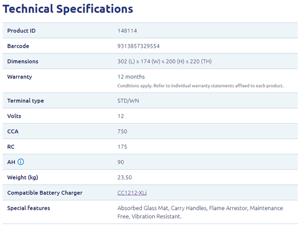 For customers searching for a 90Ah AGM battery, a 12V 750 CCA battery, or a dual purpose AGM deep cycle battery in Australia, this model targets the common need: consistent performance across both starting and accessory loads without the complexity of running multiple battery types in some setups.