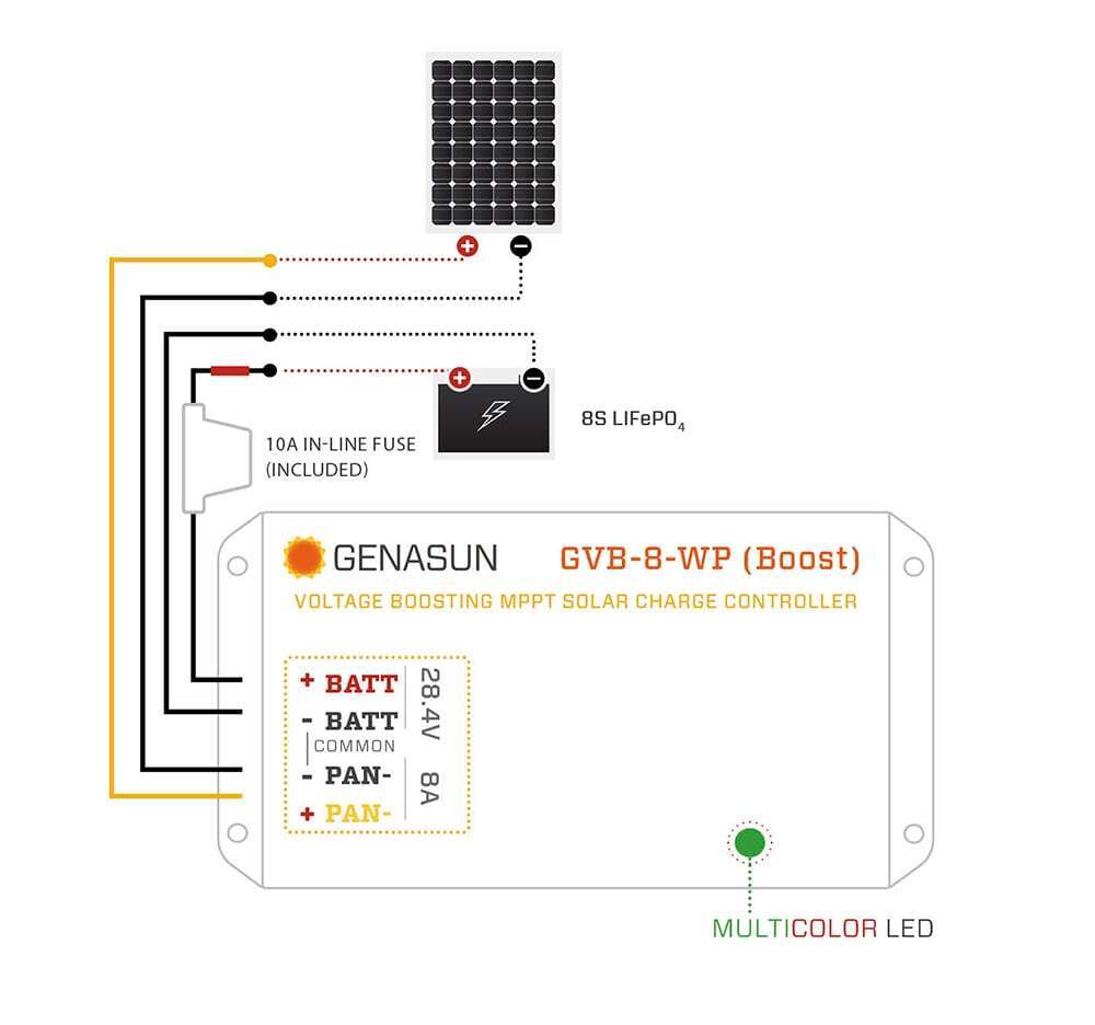 Genasun 8A MPPT 24V Voltage Boost (28.4V Lithium) - Waterproof Solar Charge Controller
