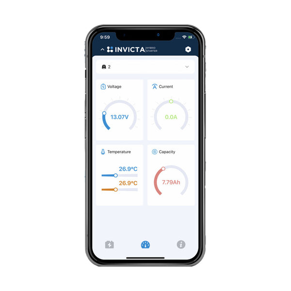- Integrated Jumpstart Feature: Quickly and easily jump-start your vehicle in emergencies with the built-in jumpstart capability, accessible directly through the battery or via the Invicta Hybrid Bluetooth app.