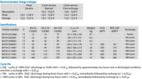 Key features: 6.5kg total unit weight, 300 cycles at 100% depth of discharge, 700 cycles at 60% depth of discharge, 1000 cycles at 40% depth of discharge.