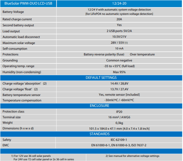 Victron 12/24V 20A BlueSolar PWM-LCD&USB (DUO Dual Battery) Solar Charge Controller