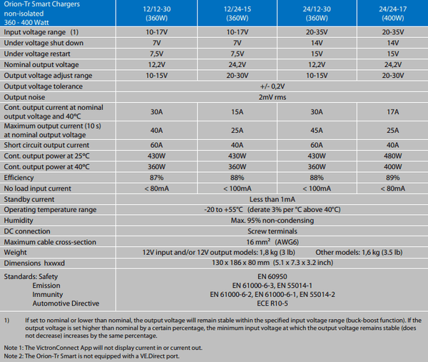| Orion-Tr Smart Chargers Non-isolated | 24/24-17 (400W) |