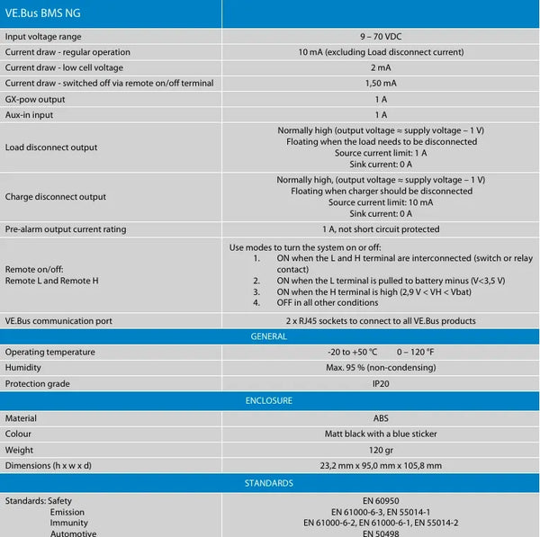 | VE.Bus communication port | 2 x RJ45 sockets to connect to all VE.Bus products |