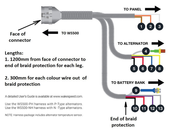 P-Type wiring harness for a WS500 alternator regulator including 0.3metre alternator temperature sensor: